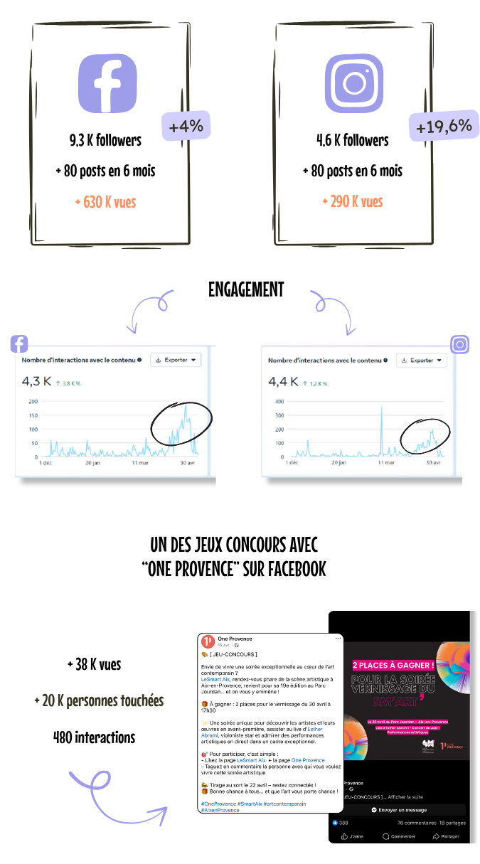 Les jeux-concours ont aussi cartonné : celui mené avec One Provence a totalisé 20 000 vues, 480 interactions et un taux d’engagement de 2,4 %. Ce jeu Facebook, lui, a suscité un bel engouement, surtout avec une audience locale.